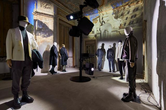 Ecco così che le forme appaiono meno rigide, più rilassate: giacche decostruite, nuove tecniche di realizzazione e materiali ricercati, tra cui alcuni d'archivio mai utilizzati fino ad oggi, fanno capolino su silhouette in cui il concetto di eleganza urbana è tangibile, richiamando il lavoro sofisticato della creazione