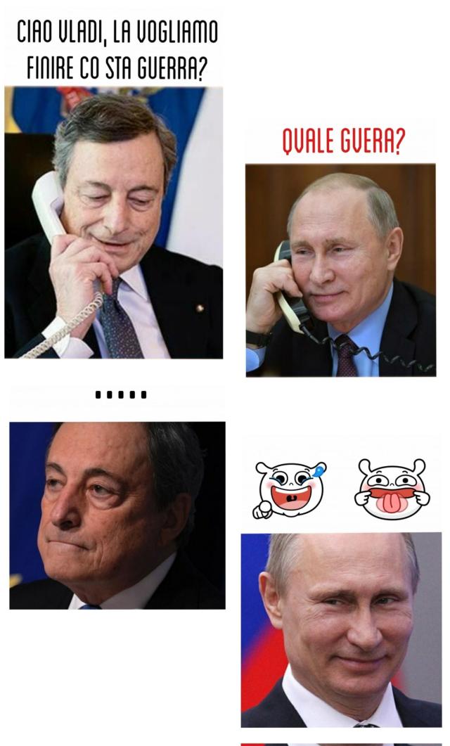 La telefonata tra Draghi e Putin è già storia sui social. Impazzano i meme che prendono in giro il premier italiano alleggerendo un momento molto teso per la politica internazionale. "Presidente, parliamo di pace". E' iniziato così il discorso che il presidente del Consiglio Mario Draghi ha intavolato con il presidente russo Vladimir Putin per rinnovargli, in viva voce, l'appello a fermare al più presto le armi per lasciare davvero il posto alla diplomazia e avvicinare la fine della guerra. Il contatto tra i due è durato circa un'ora e l'argomento principale è stato chiaramente il nodo gas e rublo.