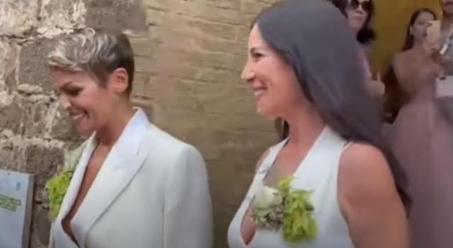 Francesca Pascale e Paola Turci si sono unite in matrimonio a Montalcino (Siena), entrambe in abito bianco: le foto fanno il giro del web. Il rito civile è stato celebrato a Palazzo dei Priori. Le nozze sono state celebrate dal sindaco Silvio Franceschelli. La cerimonia è stata piuttosto sobria e intima. Solo 25 gli invitati compresi i 4 testimoni. Nessun vip era presente. La coppia è arrivata nella piazza dove ha sede Palazzo dei Priori a bordo di una Jaguar bianca, ad attenderle una folla di curiosi.