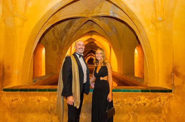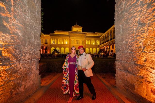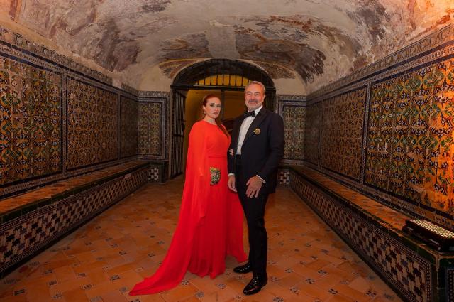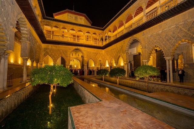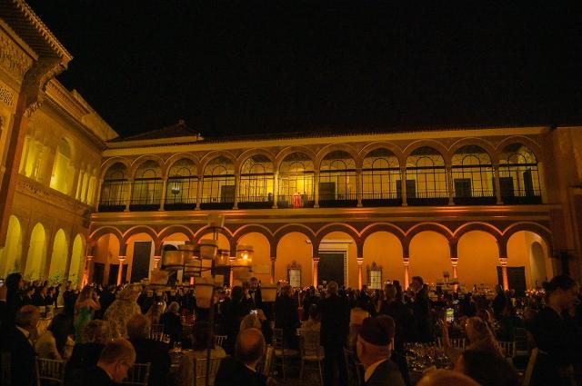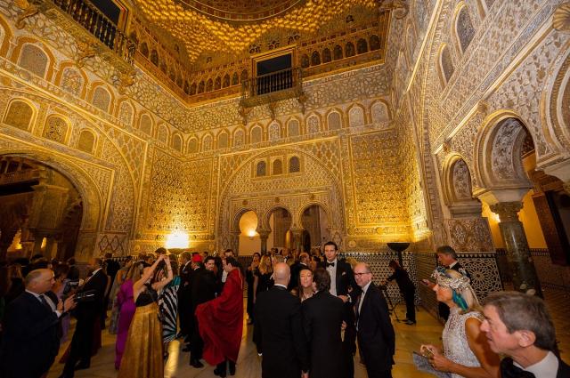 Cominciamo da chi c’era: Luisa Orleans Braganza (cugina del re di Spagna, invitato pure lui), Elena von Hessen ( nipote di Mafalda di Savoia), Beatrice di Borbone delle due Sicilia, Flavia von Hoenlohe, Johannes Schwarzenberg, Fernando Martinez de Irujo (figlio della duchessa d’Alba), Nicolas Puech-Hermes, gli stilisti Victorio & Lucchino, i Dolce &Gabbana spagnoli, Ana Maria Abascal (gemella) di Nati, la musa di Valentino, solo per citare gli ospiti piu internazionali. 550 invitati. Altrettanti hanno sperato nel last minute invitati. Generoso, di nome e di fatto, doveva rispettare il rigido protocollo della casa reale, visto che a spalancargli le porte era proprio il Royal Alcazar, il palazzo reale di Siviglia, il piu’ antico d’Europa, patrimonio Unesco, che é ancora dimora del re: quando Felipe di Spagna è in visita va a dormire li’. Un sublime esempio di architettura mudéjar che da palazzo del sultano si è poi trasformato con aggiunte di pezzi gotici in residenza di Carlo V quello che diceva: “Sul mio regno non tramonta mai il sole”.