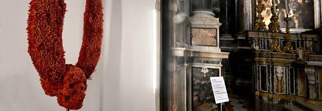 Per Eusebia è un mirabile pannello completamente realizzato in un cesellato mosaico di corallo rosso del Mediterraneo, allestito nell’Antisacrestia in cui sono custodite le chiavi che aprono la cassaforte contenente l’ampolla con il sangue di San Gennaro, oggetto di culto e devozione popolare "Per l’artista è un viaggio iniziatico, un innalzamento purificativo, richiamato dalle ali tese verso l’alto”, spiega Riccardo Imperiali di Francavilla, deputato della Real Cappella del Tesoro di San Gennaro.