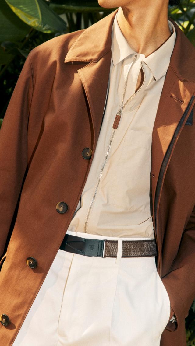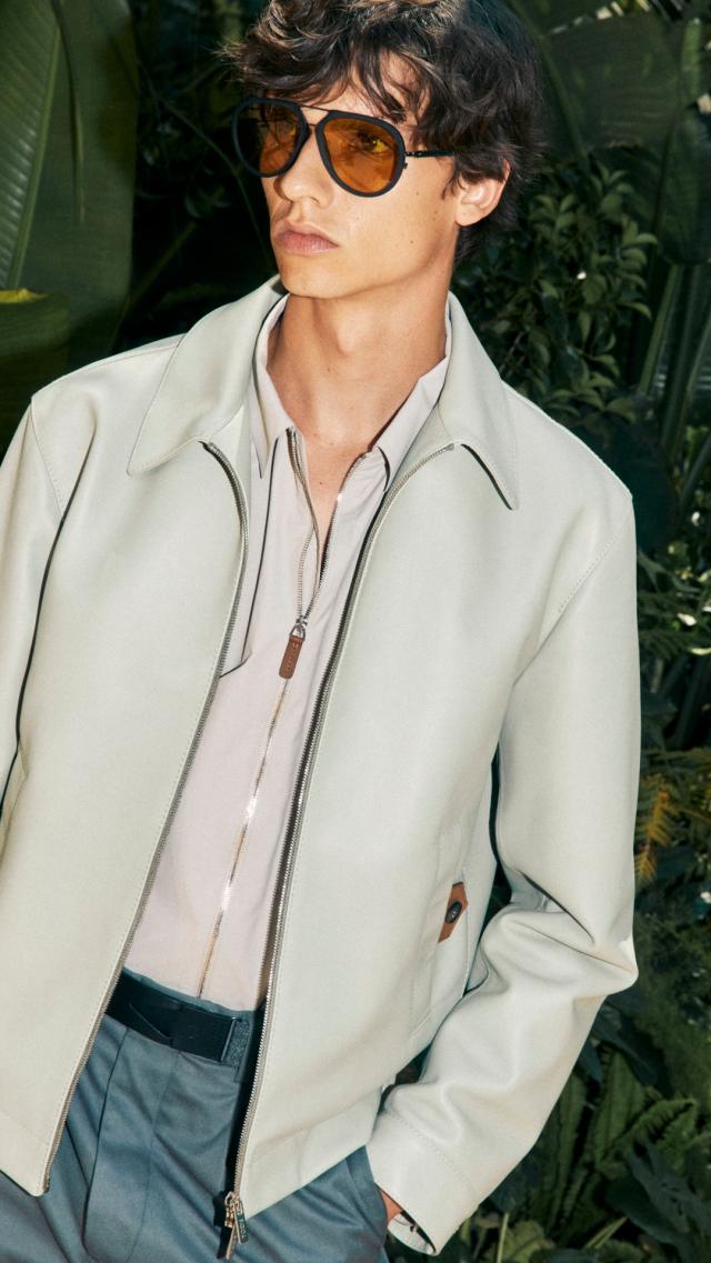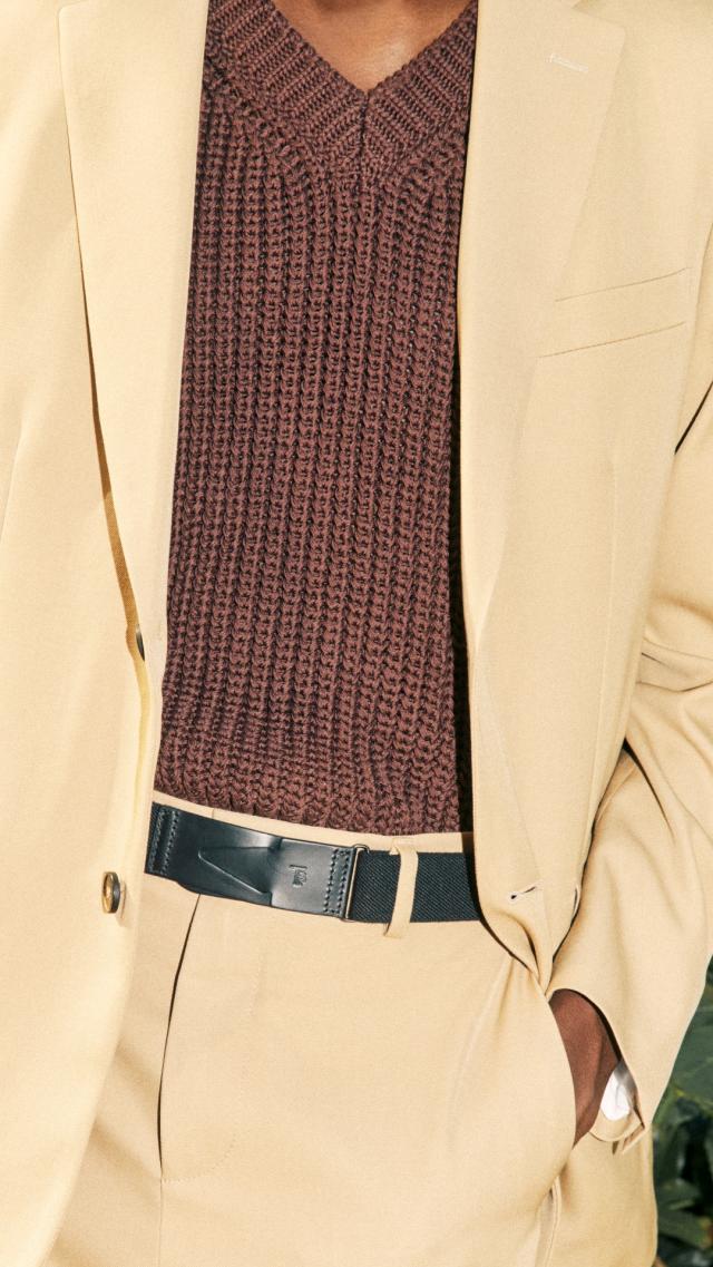 La collezione primavera-estate 2024 elogia il casual sartoriale rilassato, editato nei toni caldi dei marroni e degli écru, in materiali di grande qualità che spaziano dal camoscio impalpabile, il nylon e in svariati filati naturali come lane e cotoni e lino.
