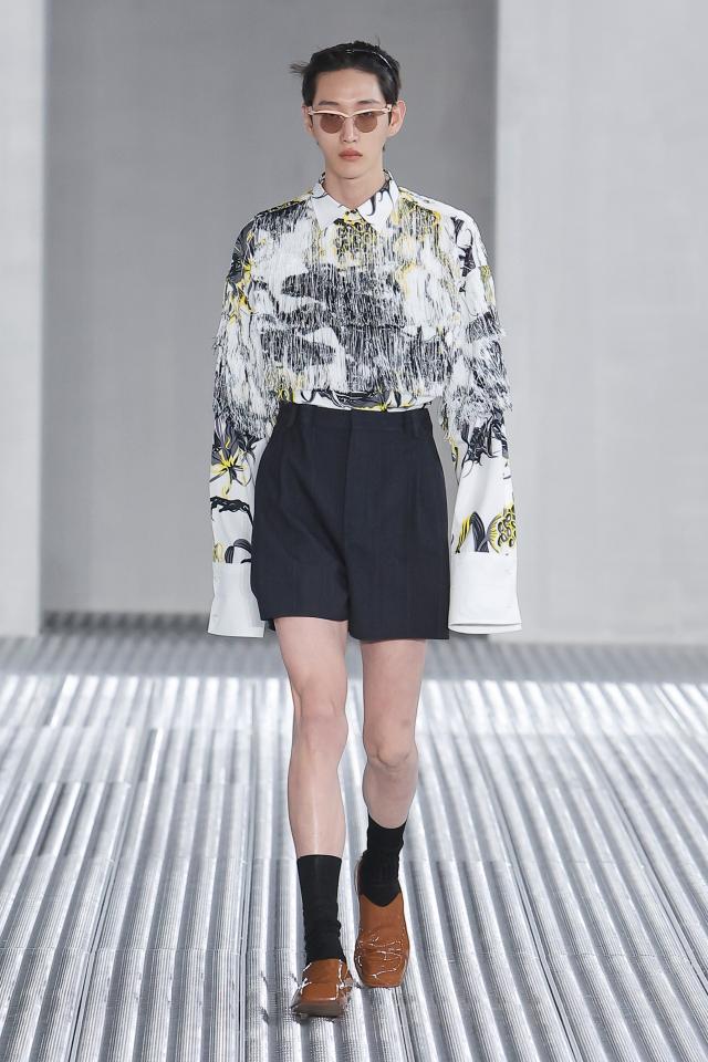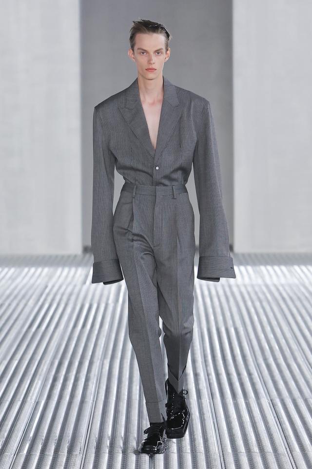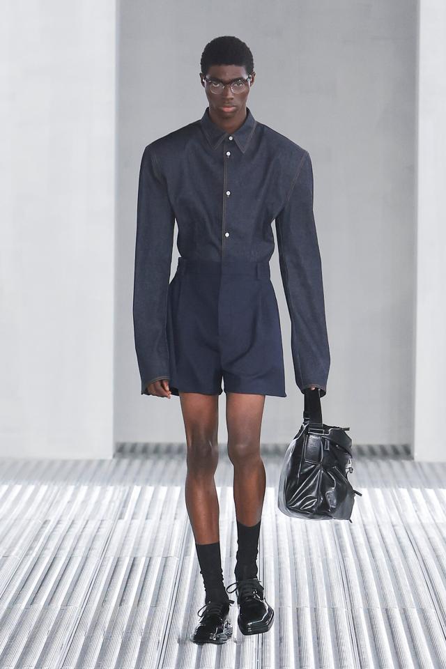La collezione Prada Uomo primavera-estate 2024 presentata negli spazi di Torre in Fondazione Prada da Miuccia Prada e Raf Simons esplora la sartorialità da un nuovo punto di vista, elaborando alcuni capi base come la camicia e l’abito per esplorarne le possibili architetture sul corpo e trasformarli in qualcosa di diverso, leggero, fluido e comodo.