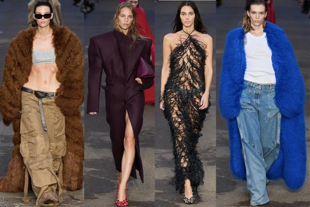 I look sono sempre audaci e contemporanei, declinati per il giorno e per la sera, alcuni già pronti da ordinare in negozio (ne hanno 250 nel mondo) e online. Pantaloni cargo oversize e maglieria, abiti dai tagli sexy e nude look, pellicce e completi dalle spalle decise.