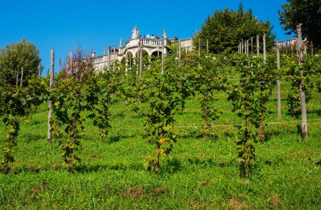 Da un magnifico terrazzo panoramico, che con la vista coglie le storiche Villa de Mattia e Villa Pasini Scotti e si protende da uno dei più belli giardini all’italiana del ‘900, si scorgono i filari del Vigneto Ritrovato, un progetto avviato nel 2017 da Montelvini per il recupero di una vigna ancestrale di uva Glera, simbolo tangibile dell’alleanza tra uomo e terra custodito e tramandato nel tempo, quel legame territoriale forte di cui ambisce essere oggi portavoce.