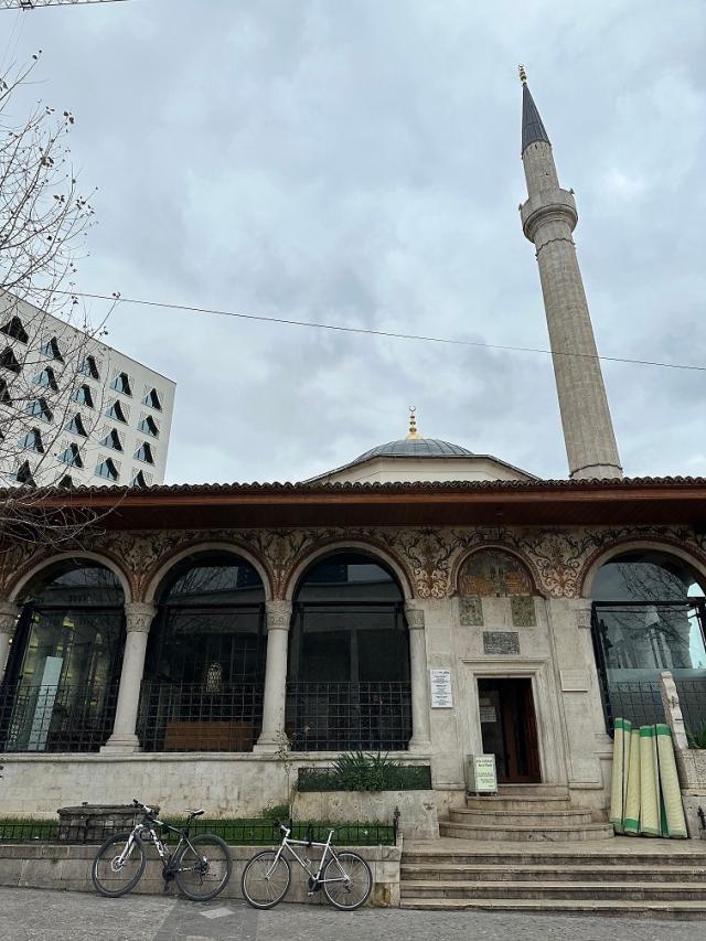 Il suo stile è quello tipico ottomano arricchito con una cupola e una torre. Fu chiusa durante il periodo comunista e riaperta senza autorizzazione nel 1991 da circa diecimila manifestanti come segno di ribellione al regime che non permetteva il diritto di culto nell'edificio. La costruzione cominciò nel 1789, sotto il governo di Molla Bey, e terminò nel 1823. Di fianco alla moschea si erge la Torre dell’orologio del 1822 risalente al dominio ottomano. Dopo aver salito i 90 gradini di una scala a chiocciola si gode una vista meravigliosa della piazza. Da ammirare gli affreschi realizzati da artisti veneziani che decorano il portico esterno dell’edificio. Nella stessa zona c’è il castello di Tirana, chiamato anche Fortezza di Giustiniano, la cui storia risale al 1300. All’interno delle sue mura alte 6 metri di età bizantina è stata realizzata un'area pedonale con negozi di artigianato, caffetterie e ristoranti.