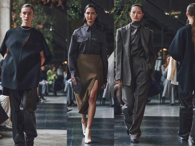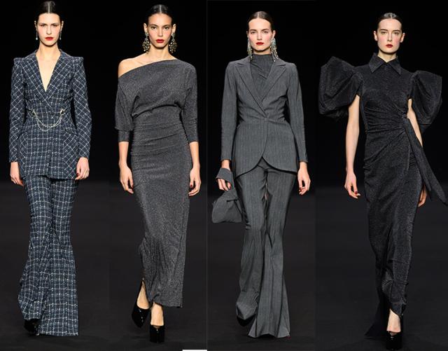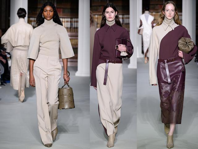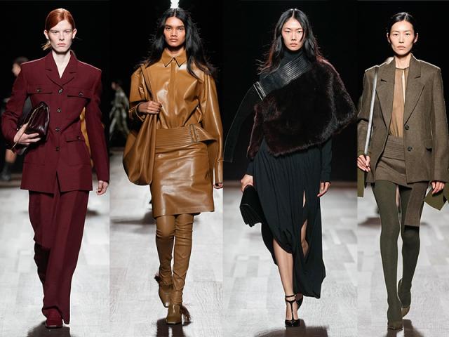 Maximilian Davis in Ferragamo si ispira a coloro che scelsero di vestirsi con abiti maschili, come Joan Crawford e Greta Garbo, sempre sensuali anche nella sartorialità scultorea più tradizionale o surrealista. Sempre con loro, cappe e cappotti avvolgenti, eleganti décolleté con cinturino T e tacco a spillo, stivaletti brogue e morbide borse couture.