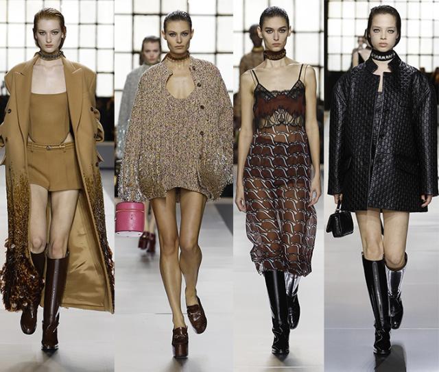 Odissea di un capospalla, viaggio minuzioso e ripetizione ossessiva di quel percorso. Sabato De Sarno, in capo alla creatività di Gucci, rispetta le regole ma agisce anche con piccoli atti sovversivi nel prêt-à-porter (abbottonatura nascosta sul retro, pizzi scomposti, sovrapposizioni o combinazioni fuori tono). Ed anche negli accessori di nuova versione.
