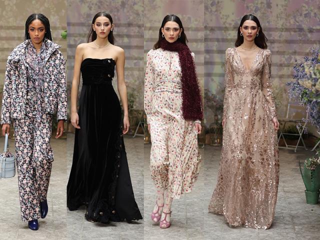 Stampe iconiche a creare un parterre fiorito e multicromatico di abiti, camicie e gonne impreziositi da origami e decori. Per proteggersi dall’inverno si indossano capotti couture, vestaglie scivolate, bomber tecnici e cappe geometriche. Mini-secchielli, sandali open-toe e stivali alti e fascianti, completano i look.