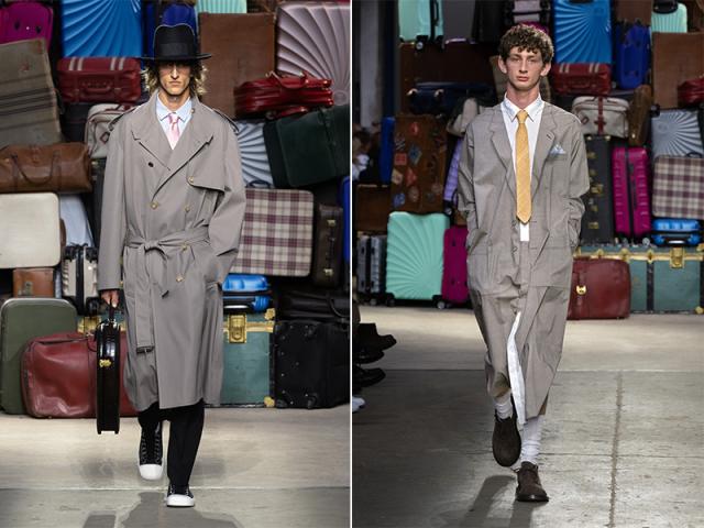 La sartoria tradizionale le segue, con le sue impeccabili regole ma senza troppe restrizioni o confini, trasformata, decostruita e poi ricostruita e soprattutto rispondente al diktat moschiniano: vestirsi con ironia (con uno sguardo attento alla contemporaneità).
