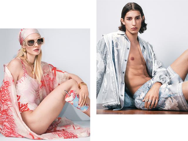 Il sentimento di pienezza e libertà portato dall’estate è fonte di ispirazione anche per Donatella Versace che celebra le sue iconiche stampe Barocco Sea e quelle dedicate all'arte classica e alla mitologia.