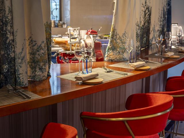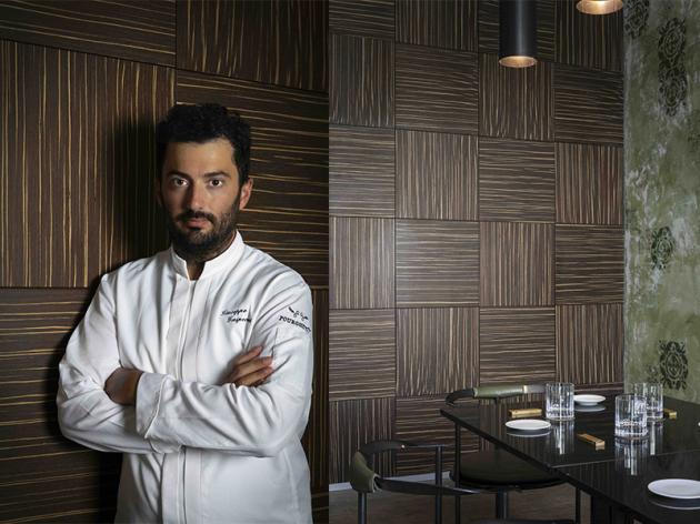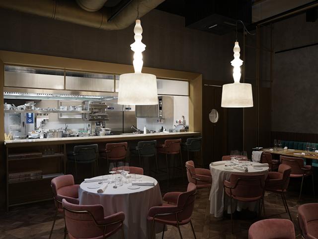 Milanese d’adozione, saldamente legato alle sue origini venete, il cuoco sceglie piatti che raccontano la laguna, la montagna, i laghi, le colline e la pianura. Si passa dalle cappesante e pesche alla guancetta di branzino alla brace e ai gnocchi dorati ripieni di baccalà. Disponibile anche il menù iconico, da gustare in sala o al bancone fronte cucina, che presenta altri classici della tradizione veneziana e alcuni primi piatti famosi, come le mezzelune di barbabietola al caviale e salsa al Franciacorta e il risotto al limone, sugo d’arrosto e liquirizia.