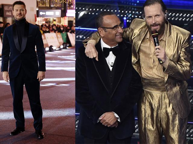 Rocco Hunt ha scelto un total look firmato Neil Barrett e Tony Effe ha optato per un abito doppiopetto personalizzato Gucci.
