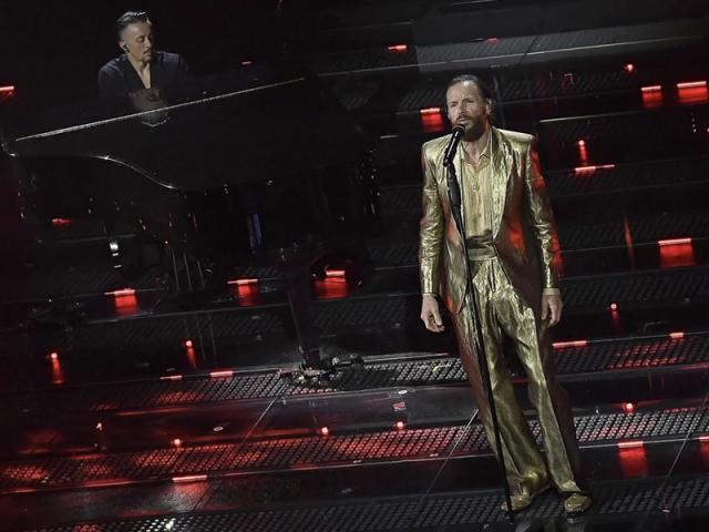 Jovanotti fa una lunga performance con alcuni dei suoi successi musicali indossando un total look dorato di Dior by Maria Grazia Chiuri e duetta in una poesia con Gianmarco Tamberi, atleta e altro ospite della serata, che ha scelto di indossare uno smoking Giorgio Armani.