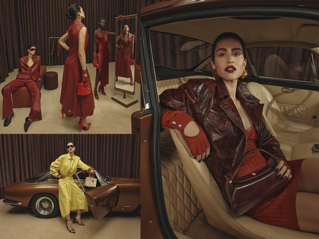 I modelli hanno sullo sfondo quinte scenografiche, affiancate da specchi, autovetture e sedute in pelle, oltre agli accessori iconici, come Ferrari Dino Bag, la nuova borsa Nello, The Ferrari Tool Case, i guanti driving, gli occhiali da sole e i gioielli scultorei.