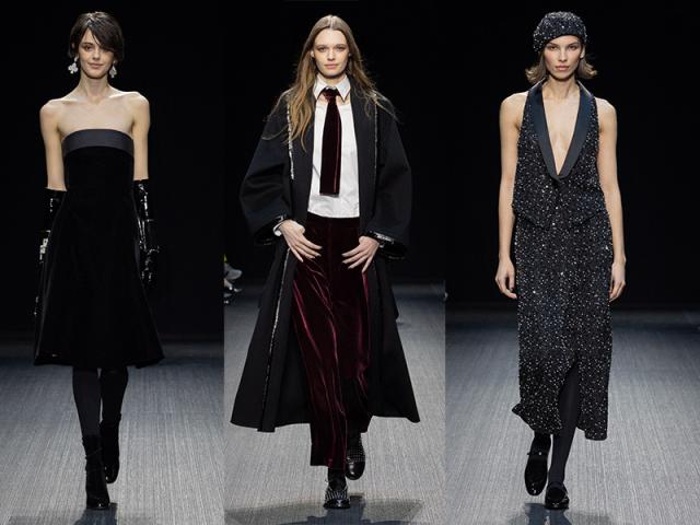 Alcuni look riprendono i codici della sartoria maschile ed anche gli abiti sera sigillano tutto ciò che si può costruire per durare e per dare risalto alla parte più nobile dell’eleganza.