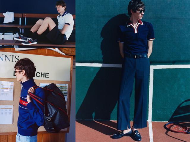 Gli accessori rétro completano l’immagine del tennista, con fasce per la testa, occhiali aviator metallizzati, borse e borsoni in tela GG Monogram con finiture in pelle e un’esclusiva racchetta da tennis creata in collaborazione con il marchio sportivo del settore Head, in edizione limitata, per dare equilibrio tra potenza e controllo, sport ed eleganza.