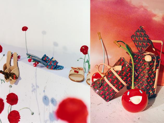 La coppia di ciliegie Cherry Murakami per Louis Vuitton viene serigrafata e trasformata in dettagli di design, stampe tridimensionali o altri divertenti ricami e charms per i prodotti super star 2025: le borse Capucines, Speedy, Alma e Side Trunk, le ballerine Romy e i sandali Maya, oppure le sneakers Cherry.