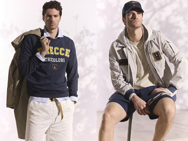 Divise e attitudine sportiva per il marchio Aeronautica Militare che presenta nel suo guardaroba capispalla ripiegabili su sé stessi come la coach jacket, il giubbotto anti-vento e il classico spolverino, realizzati in tessuti tecnici resistenti all’acqua e ovviamente leggerissimi.