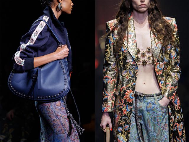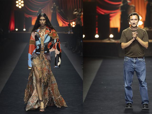 Etro è in perpetua agitazione spontanea nel narrare il racconto di stile e invita a riscoprire qualla energia primaria e indomabile che pervade il gesto di vestirsi e raccontarsi, sia esso con linee di sartoria precisa oppure fluidità trasparenti.