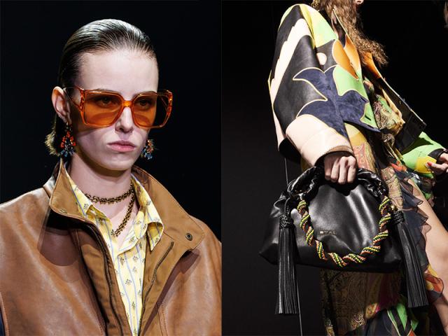 Giubbotti e bluson di pelle sono immancabili come i bijoux camaleonte e i cappelli a tesa larga, le sacche e borse a mano dalle forme morbide, i tacchi scultorei.