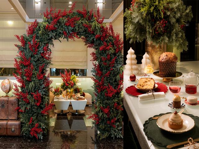 Il panettone del pasticcere Beniamino Passannante si affianca ai piatti dello chef Matteo Gabrielli del Ristorante Acanto, che firma anche quattro diversi menu per la Vigilia, il pranzo di Natale, la notte e il pranzo di Capodanno.