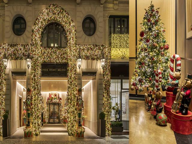 Gli hotel che circondano la Stazione Centrale di Milano si addobbano a saloni di gala aperti agli esterni per tutto il giorno, decorati con atmosfere natalizie da mille e una notte.