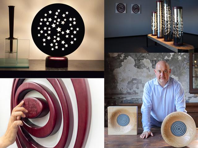 Le nuove opere inedite della serie Eclissi, invece, sovrappongono la luce al metallo ed evocano il fenomeno astronomico per riflettere sul dualismo tra ombra e illuminazione.