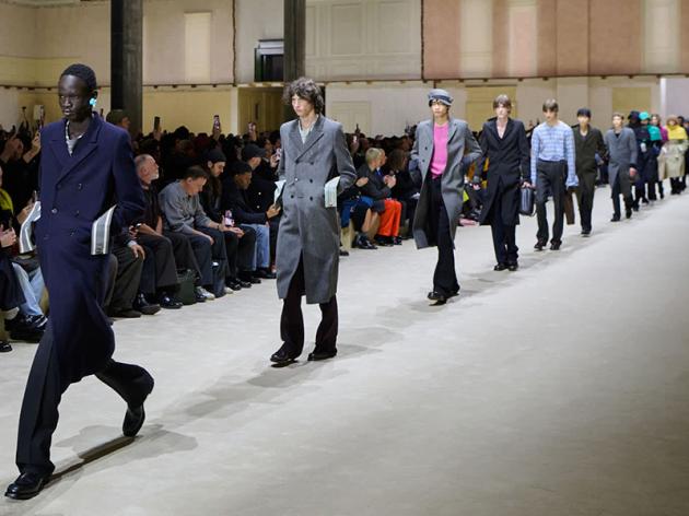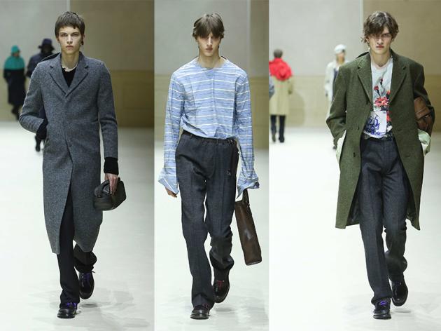 Before and Next, Prima e Successivamente, così la moda di Prada portata in sfilata da Miuccia Prada e Raf Simons coglie l’occasione per guardare sotto gli strati del vestire maschile e per interrogarsi sui cambiamenti del costume.
