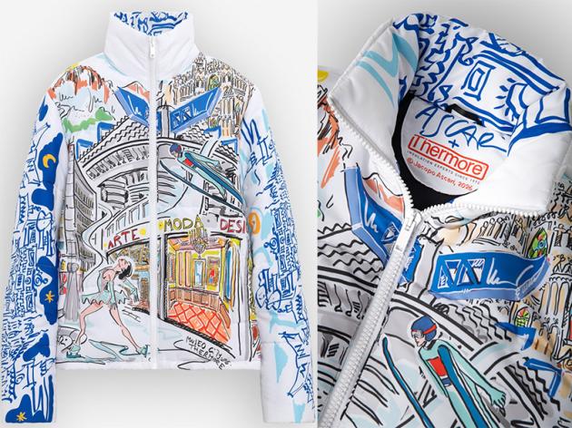 Disegna lo spirito e i siti olimpici, l’artista e architetto Jacopo Ascari per l’azienda Thermore, leader nello sviluppo di imbottiture termiche: un piumino illustrato a mano che diventa un viaggio visivo e di narrazione dell’abbigliamento tecnico.