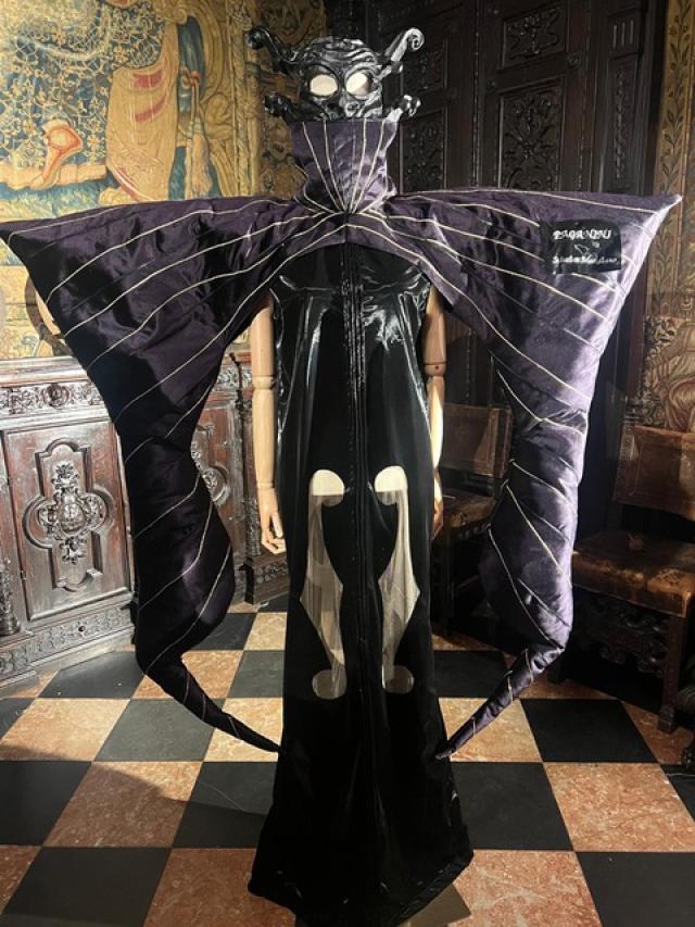 Saranno famosi? Sono gli allievi dello Iuad selezionati per la loro performance al Museo Bagatti Valsecchi tra armature medioevali si collocano abiti sculture, 30, 40 ore di lavoro manuale per ogni pezzo. C’è quello ispirato a Otto e mezzo, il capolavoro felliniano, realizzato in celluloide, pellicola cinematografica semi/arrotolata per farci un vezzoso copricapo. Si chiama Sinergie di Forza e mette insieme il maschile e il femminile. Dedicato a Paganini l’abito del napoletano Salvatore Marigliano, disegnata la sagoma della cassa del violino mentre la maschera fa molto Eyes Wide Shut. La Venere della Gentileschi ( interpretato da Roberta Oliveri) porta a passeggio la testa di Salomé nella gabbietta di rame. Intrecciata in metallo anche la gonna.