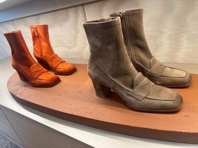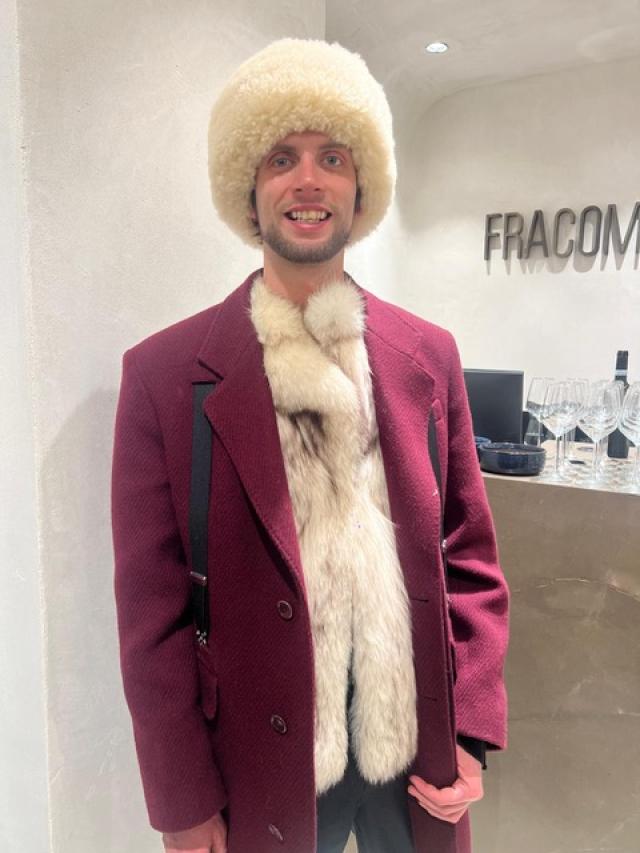 Siamo tutti Santoni, perché amiamo la sua alta, altissima pelletteria. E quando infila lo stivaletto in daino dentro il mocassino colore orange con tacco diventa subito cult. Suggestivo lo specific site fatto di mega tableaux ton sur ton dell’artista Sophie Dellaporte.