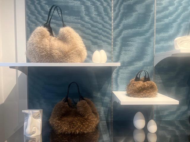 Che belva sei? Puoi scegliere l’animale che meglio ti rappresenta: il leone, la zebra o la giraffa…nella wonder room, la stanza delle meraviglie di Gianni Chiarini, brand di alta artigianalità. Sembra vera pelliccia anche al tatto, invece è ecosostenibile, bianca punteggiata come se fosse una lince le borse impreziosite da ciondoli/animalier.