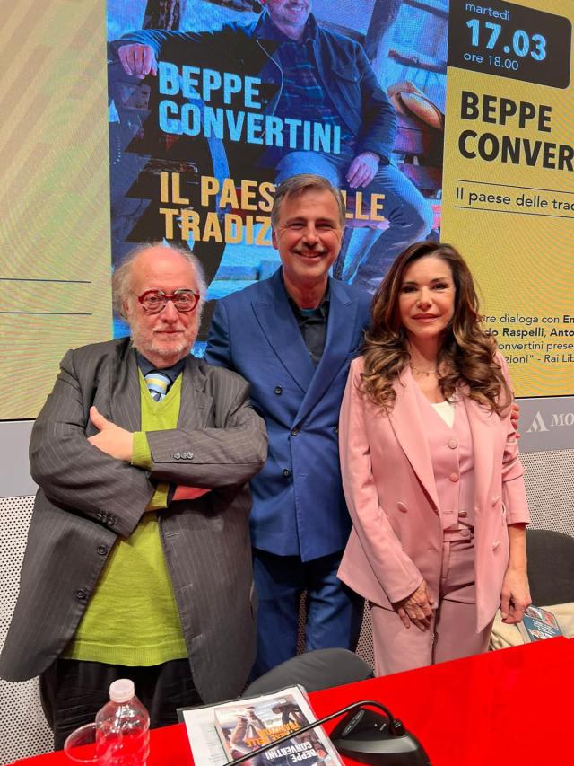 Presenti oltre duecento amici del conduttore di Uno mattina in famiglia nel weekend di Rai1, che poi hanno acquistato il libro, pubblicato da Rai Libri, che si è rivelato molto più di un semplice volume: quasi un viaggio senza valigia tra le tradizioni più autentiche d’Italia. Tra racconti, incontri e curiosità, Beppe Convertini ha portato tutti a spasso per un Paese fatto di riti antichi, mestieri “d’altri tempi” e comunità che non mollano mai le proprie radici. E poi via con le immagini: processioni spettacolari con macchine a spalla, feste di paese, il Carnevale di Romeno in Val di Non e la suggestiva ’ndocciata di Agnone in Molise. Convertini ha ascoltato, osservato e raccolto storie come un vero “cacciatore di tradizioni”, restituendo il ritratto di un’Italia che, tra una festa e l’altra, continua a resistere.. e a festeggiare le proprie tradizioni.