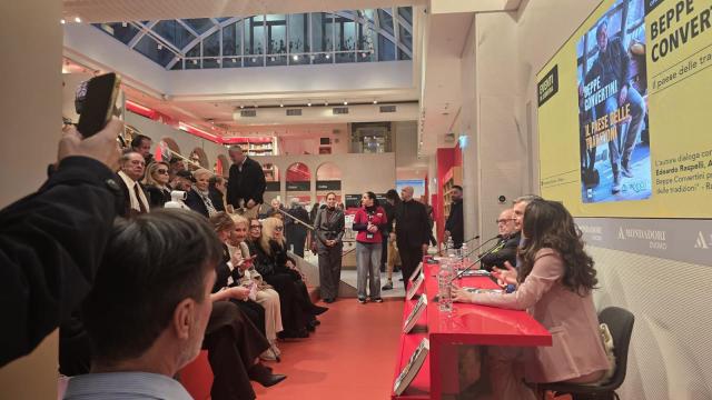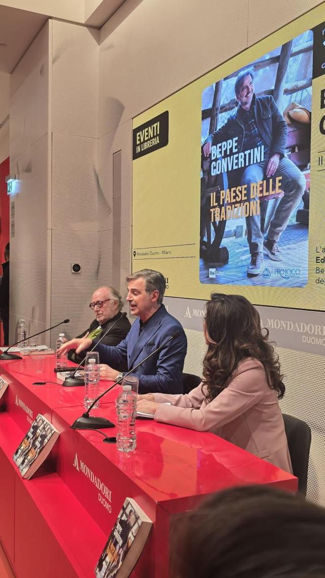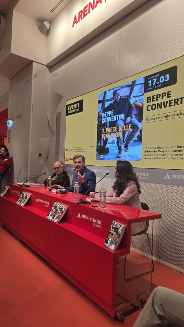 Beppe Convertini ha fatto tappa alla Mondadori Duomo di Milano con il suo libro “Il Paese delle tradizioni”. A tenergli testa, con eleganza e qualche sorriso, ci hanno pensato i due ospiti al tavolo, ovvero Emanuela Folliero ed Edoardo Raspelli, mentre tra il pubblico si potevano notare molti volti noti: da Jo Squillo, seduta ad ascoltare, a Michelle Masullo, passando per Simona Tagli, Daniela Javarone, Ivan Cattaneo,Justine Mattera, Claudia Peroni, Mario Furlan fondatore dei City Angels e la presidente di Rai Com Claudia Mazzola.
