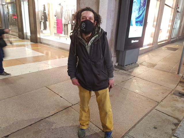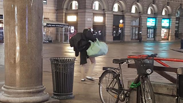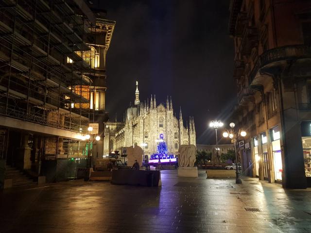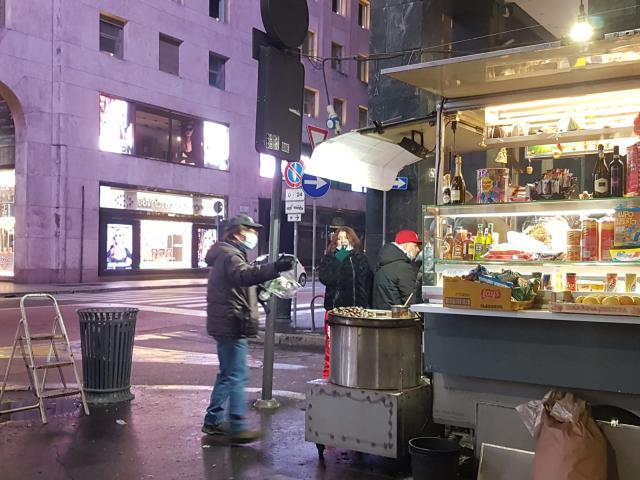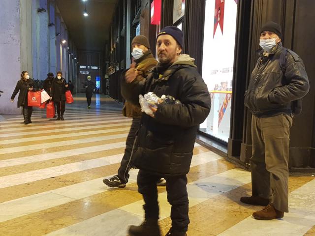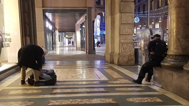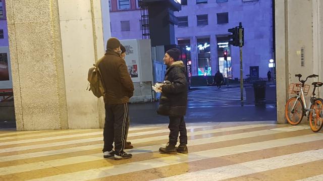 La nebbia umida e fredda, la pungente rugiada notturna che fa stringere gli occhi, in una Milano surreale, abbandonata, popolata da persone notturne che si preparano alla notte, con giacigli improvvisati.