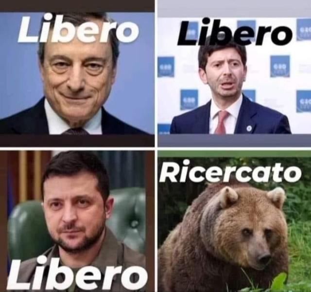 Tutti contro Fugatti, dunque, almeno per adesso. Sul web, infatti, la posizione della maggior parte delle persone è chiara. Quasi nessuno vorrebbe che l'orsa venga abbattuta. C'è chi vorrebbe che torni in libertà e c'è chi vorrebbe portarla in una struttura protetta, magari in uno zoo. Intanto è pioggia di meme in rete. Tra i più belli e divertenti ce n'è uno che mostra le foto di Mario Draghi e di Roberto Speranza con la scritta "libero", sono di fianco all'orsa che invece porta la scritta "ricercato".