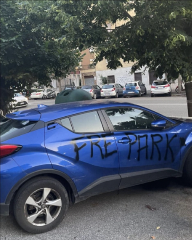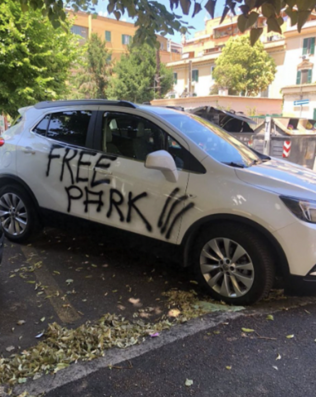 Non si firma con la “Zeta”, ma con una scritta in inglese, talvolta sgrammaticata. È lo “Zorro alla carbonara” di Roma, che si fa chiamare “Free Park” e attacca nella notte le auto parcheggiate in sosta vietata o su posti destinati a persone disabili.