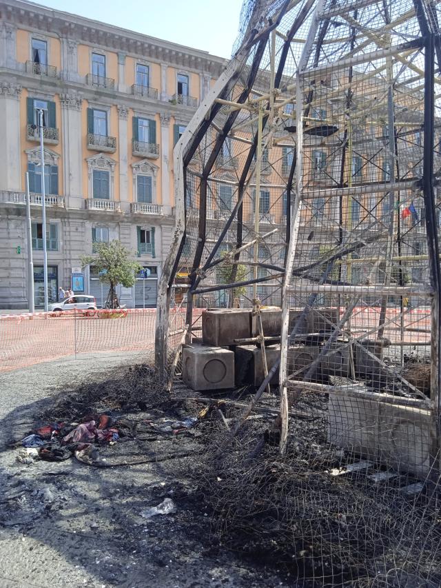 All’alba di questa mattina a Napoli proprio di fronte al palazzo del Municipio un grande incendio è divampato nell’omonima piazza cittadina. A farne le spese la maestosa Venere degli Stracci, opera d’arte contemporanea dell’artista novantenne Michelangelo Pistoletto, realizzata nel 1967 su ispirazione dell’opera di Bertel Thorvaldsen Venere con la Mela. Installata lo scorso 28 giugno in piazza Municipio quale opera inaugurale dell’ambizioso programma “Napoli Contemporanea” aveva come obiettivo quello di indirizzare la piazza appena liberata dai cantieri della metropolitana ad agorà pubblico per eventi ed esposizioni d’arte di levatura internazionale. Stando alle ricostruzioni effettuate grazie alle foto postate sui social l’incendio sarebbe divampato tra le 5.13 e le 5.30. Subito intervenute, le forze dell’ordine di polizia e vigili del fuoco, non hanno potuto far altro che mettere in sicurezza l’area è constatare la disarmante situazione. Al momento non si conoscono con certezza le cause dell’incendio ma stando ai rumors parrebbero essere di natura dolosa; subito esclusa l’ipotesi, inizialmente acclarata dell’autocombustione, anche perché la struttura non sarebbe collegata ad alcun impianto elettrico. A destare sospetto una coppia di lattine trovate alla base della struttura portante che potrebbero essere state usate per innescare l’incendio. Alcuni presenti hanno confermato che durante questi giorni l’opera è stata oggetto di scherno e provocazioni da una parte dell’opinione pubblica; per lo più improvvisati “esperti d’arte” privi di visione retrospettiva. Lo stesso Sindaco di Napoli, Gaetano Manfredi, mostratosi profondamente rammaricato dell’episodio, avrebbe parlato addirittura di una sfida nata sui social nei giorni scorsi con l’obiettivo di dare alle fiamme la Venere; probabilmente una delle tante catastrofiche competizioni web che stanno diffondendosi a macchia d’olio senza controllo. Intanto, intorno alla recinzione che delimita lo scheletro metallico della struttura ancora in piedi, qualcuno lascia un omaggio floreale, probabilmente spinto dal bisogno di rendere scusa al mondo ed esprimendo nel contempo la volontà di dissociarsi ed indignarsi verso per quella mala Napoli che non sa rispettare neanche se stessa. Napoli, luogo dove la cultura è ancora oligarchica,; un’insieme complesso di capacità e conoscenze che rappresentano per la Città una ricchezza immensa distribuita troppo iniquamente.