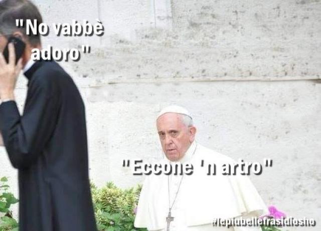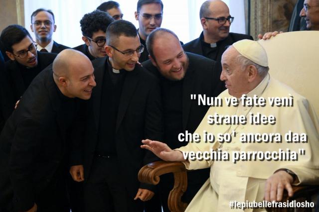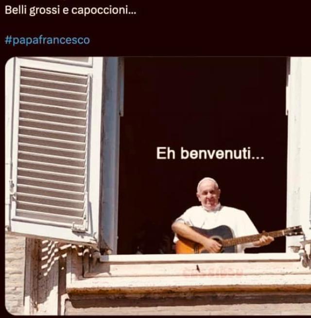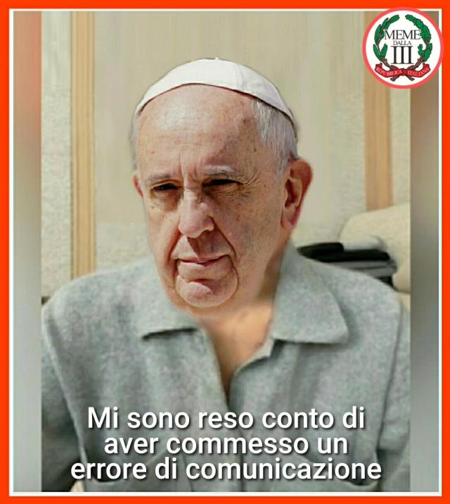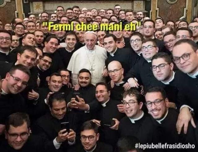 C'è chi paragona il Papa alla Ferragni: "Scusate, ho fatto un errore di comunicazione". Alcuni meme di Osho, in uno si vede Bergoglio attorniato da seminaristi, e la scritta: "Non vi fate venire strane idee che io sono ancora della vecchia parrocchia", mentre nell'altro un tizio che al cellulare dice "Adoro", ed il Papa: "Eccone n'artro".