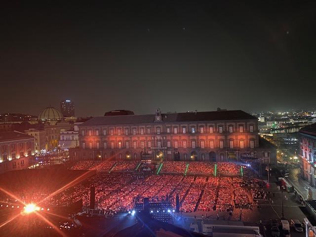 Io c’ero e non c’ero. Cioè, non ero un orecchio pagante. Ma abusivo. Ero sulla magnifica terrazza del penalista Domenico Ciruzzi e di Antonella Stefanucci (formidabile attrice) spalancata su Piazza Plebiscito.Al netto delle polemiche dell’uso sconsiderato che si fa della piazza-simbolo della identità della città lo spettacolo visto dall’alto è notevole. Certo come ci sono arrivati e come usciranno dalle strade che sono degli imbuti le migliaia di ospiti è un’altra faccenda.Dicasi sorcini, lo zoccolo duro dei fan di Renato Zero che lo seguono anche in trasferta. Tra questi Marco ( che è anche il mio direttore). La passione/hobby di Marco è il karaoke, lo fa tra amici, sembra l’erede Fiorello senza la carcassa mediatica.Il concerto dura molto, oltre tre ore. Solo qualche interruzione per consentire all’artista di cambiare travestimento, tube, strass e piume. Attacca con I migliori anni dell nostra vita. E fu un boato.