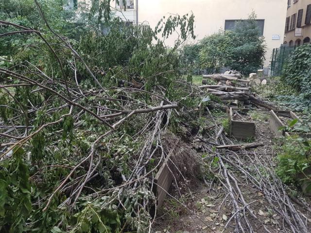 A distanza di quattro giorni dall'abbattimento di oltre 20 alberi sani presenti nel Giardino Scaldasole dell'omonima via a Milano, nella piccola oasi verde, c'è la devastazione. Chiunque passi non riesce a spiegarsi quanto accaduto mercoledì 3 luglio 2024, senza alcun preavviso, quando il Comune di Milano ha inviato gli operatori della GIVO Company di Melegnano per abbattere tutta le piante del "polmoncino verde" che rappresentava un punto di ristoro e di riferimento per tutti gli abitanti della zona e che, con la sua biodiversità e le se piante rigogliose cresciute in 15 anni, contribuiva a rendere fresca l'aria e a ridurre l'inquinamento in un'area milanese ad alta densità di uffici, abitazioni, negozi, bar e ristoranti. Dopo il precedente del bosco di via Falck-Casa del giovane, è stato l'ennesimo abbattimento di alberi nell'area comunale di Milano ad aver suscitato l'indignazione dei residenti.