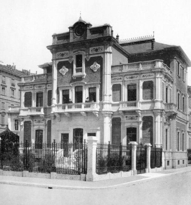 Nelle foto si può vedere la villa com'era in passato. La sua storia inizia nel 1897, quando fu fatta realizzare per l’imprenditore del tessile Pasquale Crespi, fratello minore di Cristoforo Benigno, il fondatore del villaggio operaio «ideale» di Crespi d’Adda. L’edificio si basava sul progetto neorinascimentale dell’architetto Steno Sioli Legnani, ma nel tempo subì alcune modifiche, che gli conferirono uno stile liberty e un sapore eclettico, similmente alle scomparse Villa Hoepli e Villa Francetti Frova (resistono invece le vicine Villa Falck, villa Maria Luisa e Villa Borletti).