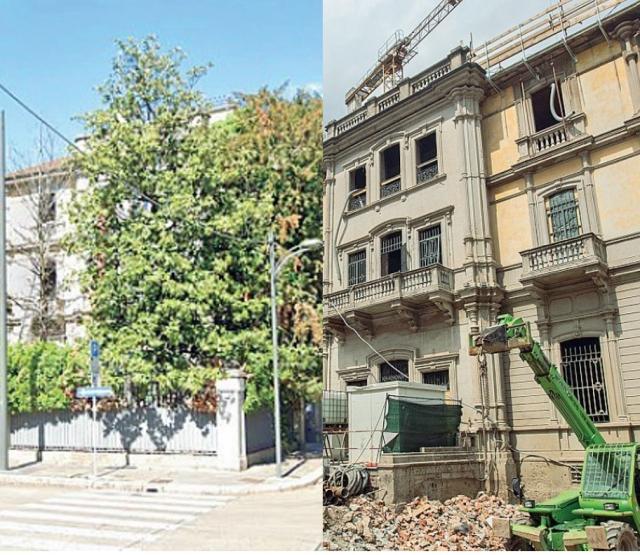 La storica residenza dell’alta borghesia meneghina fa da perimetro a via Venti Settembre e via Tamburini, all’angolo con via Tasso. Il bel quartiere Magenta in cui si trova, caratterizzato da architetture di fine Ottocento e inizio Novecento, risale al Piano Berutto (1884-1889), primo piano regolatore cittadino che disegnò questa strada di villini immersi nel verde. Pure la dimora Crespi, nota anche come Villa Mondadori, è sempre stata caratterizzata dal suo florido giardino. Sopravvissuto a numerose modifiche e passaggi di mano, solo l’ultimo acquirente ne ha previsto il quasi totale disfacimento. Resta solitario un tiglio, alto quasi 15 metri. Il proprietario che sta apportando queste pesanti modifiche è l’uomo d’affari Stefano Alberto Bonfiglio, che ha acquistato la villa tre anni fa per oltre 20 milioni di euro, una delle maggiori transazioni immobiliari cittadine di quell’anno, nonché degli ultimi tempi.