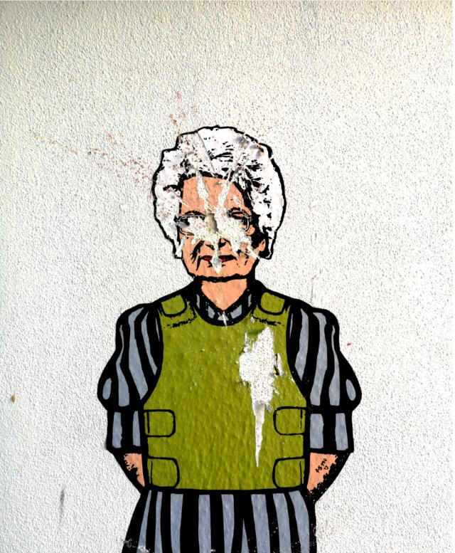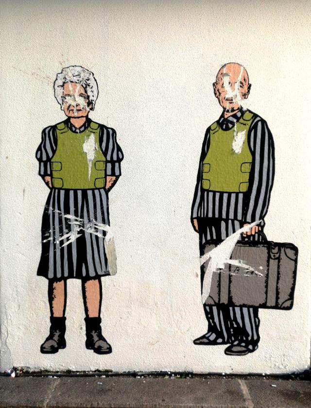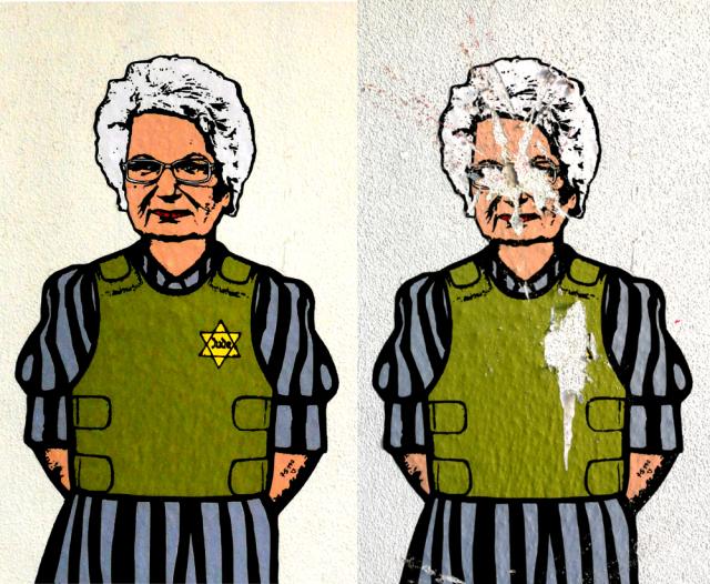 Nell'opera sono stati cancellati i volti dei due protagonisti e le stelle di David gialle che erano presenti sulle loro maglie verdi.