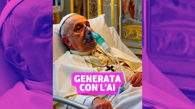 In realtà si tratta di una foto fake creata con l'intelligenza artificiale. Il volto del Papa, seppure somigliante a quello reale, presenta alcune differenze. Inoltre è impensabile che il Pontefice indossi gli abiti papali durante il ricovero. Il crocefisso poi non è assolutamente quello indossato da Papa Francesco e la forma presente diversi errori.