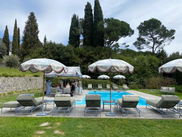 Tira aria primavera sul Lago di Como e riflette la sagoma della splendida villa settecentesca. In questa cornice lussureggiante Luisa Beccaria la stilista, apprezzata in tutto il mondo per il suo stile bucolico e raffinato, ha esposto durante la Design Week la sua ultima Home Collection. Un’ allestimento permanente visto che Luisa ha “vestito” con grazie e eleganza gli spazi della piscina e i dehors con gazebi, sedute, chaise longue con disegni ispirati ai saloni affrescati dalla scuola del Tiepolo di Villa Sola Cabiati, una volta residenza privata dei conti Serbelloni, oggi gestita dal cinque stelle Luxury Grand Hotel Tremezzo. Pronti a innamorarvi dei salotti en plein air in perfetta armonia con la villa? Luisa ha disegnato tessuti usando le palette degli affreschi in un mélange riuscitissimo con le sfumature cromatiche del paesaggio. Nella mise en scene da dejeuner sur l’hérbe é stata affiancata da Guido Toschi e Beno Reverdini. A suggellare ancora di più la meraviglia di questi allestimenti é stata presentata anche una capsule collection di parei e costumi pensati per la clientela della Villa, che ospita sei suite di rara bellezza. Al primo piano troneggia il letto di Napoleone damascato e una rara e preziosa biblioteca. Ultimo tocco magico e il pranzo é servito, curato da Viviana Varese, executive chef di Passalacqua anch’essa di proprietà della famiglia De Santis e insignita del premio 50 best hotel mondo. Un menù gourmet fatto di sfoglia reale con caviale, pasta patate e pistacchi, squisita omelette norvegennie mentre il maitre patissier serviva profileroles flambeés à la minute sulle note della soprano Carolina Lopez Moreno.