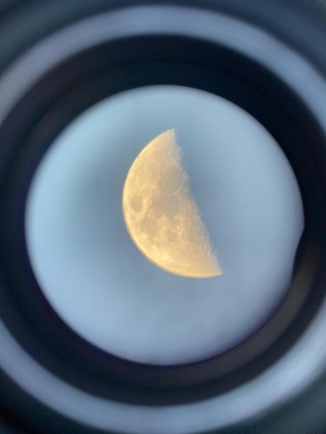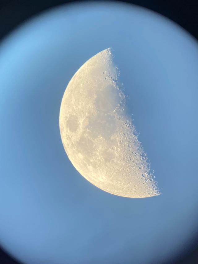 Ci avviciniamo al telescopio, come sembra vicina la luna, come sono nitidi i suoi crateri, come sono bianchi. Sembra di accarezzarla.