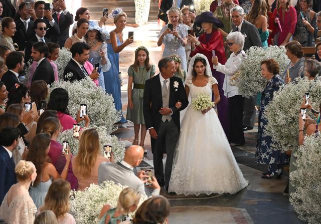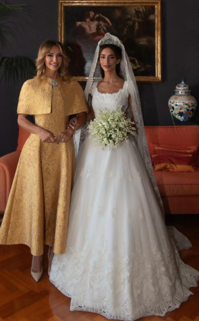 Anna Virginia indossava un diadema donato dall imperatore d’Austria ai Sanseverino e un velo settecentesco di Bruge della famiglia Visocchi, intorno al quale le stiliste dei Grandi Matrimoni Reali Luisa e Lucilla Beccaria ( madre e figlia, il binomio creativo é indissolubile) hanno fatto ricamare l’abito da sposa.