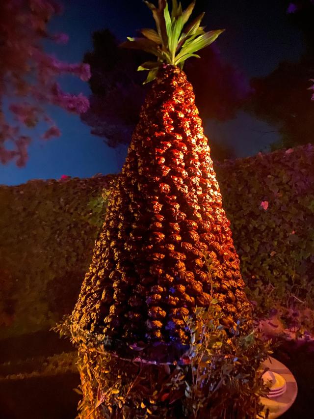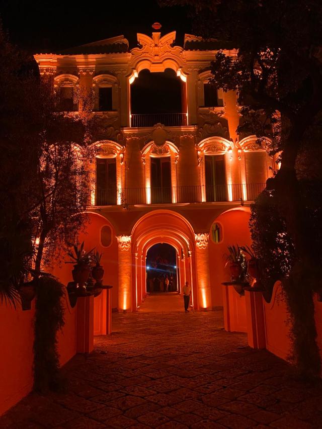 Il pranzo é servito. E che prelibatezze dagli archivi dell’antica cucina borbonica. Ogni dettaglio ricercatissimo, dalla tarantella che accoglieva gli ospiti sui balconi della facciata settecentesca, al tendone drappeggiato rosso e oro, sotto il quale si snodava un unico tavolo a serpentina per i 400 invitati placé. Una regia impeccabile quella di Carolina Pignata Lambrecht, di padre napoletano e di madre tedesca, disciplina e creatività, mix perfetto. Come il gioco di geometria con il trionfo di dolci montati su sculture di erba che esaltavano il giardino di piante secolari. E si continua a sognare.
